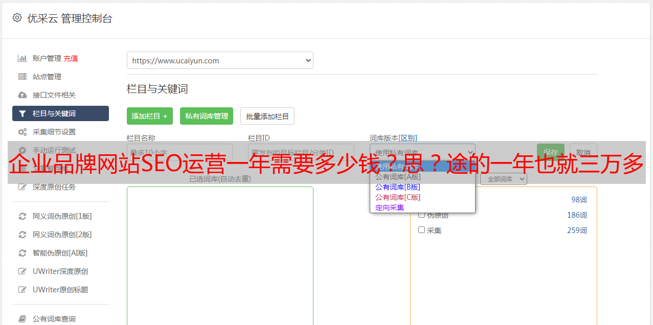 优采云 发布时间: 2021-08-26 23:09企业品牌网站SEO运营一年需要多少钱?思?途的一年也就三万多