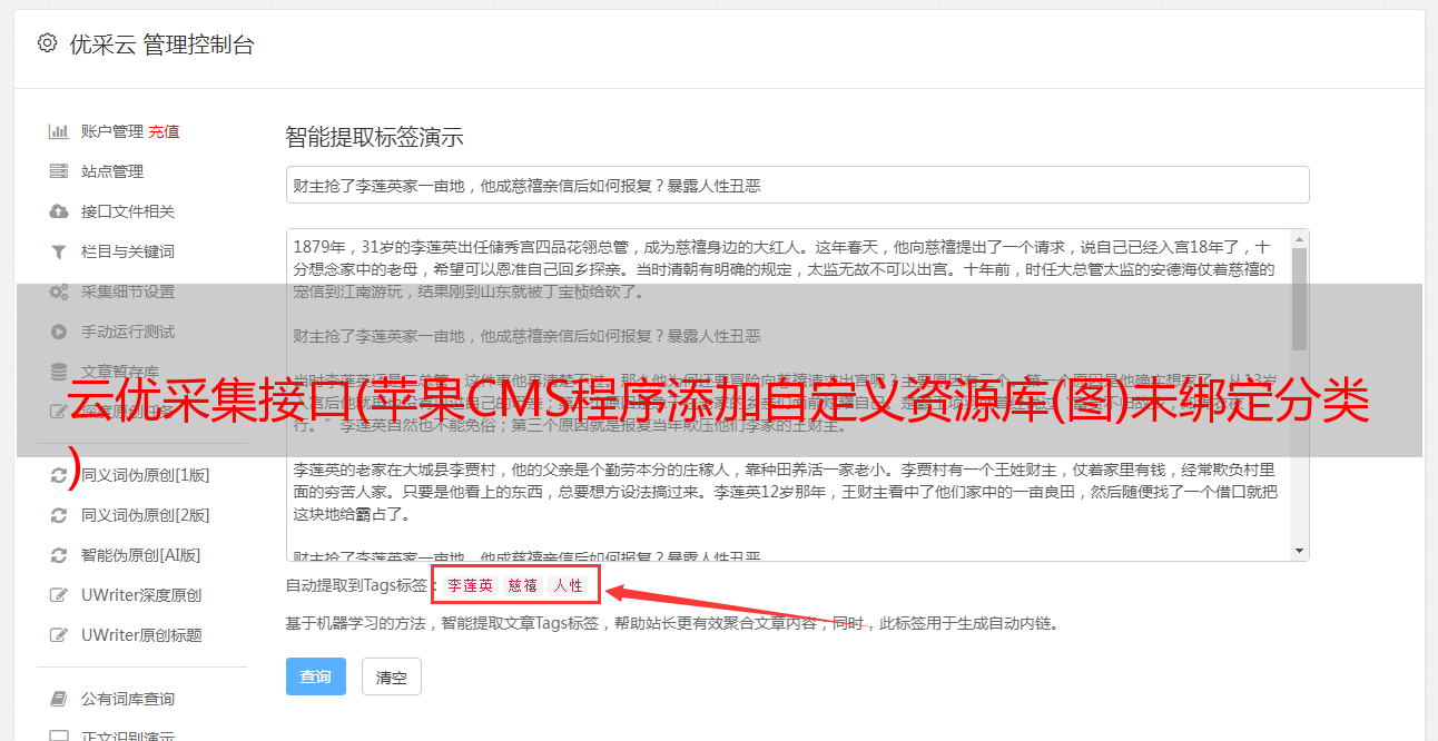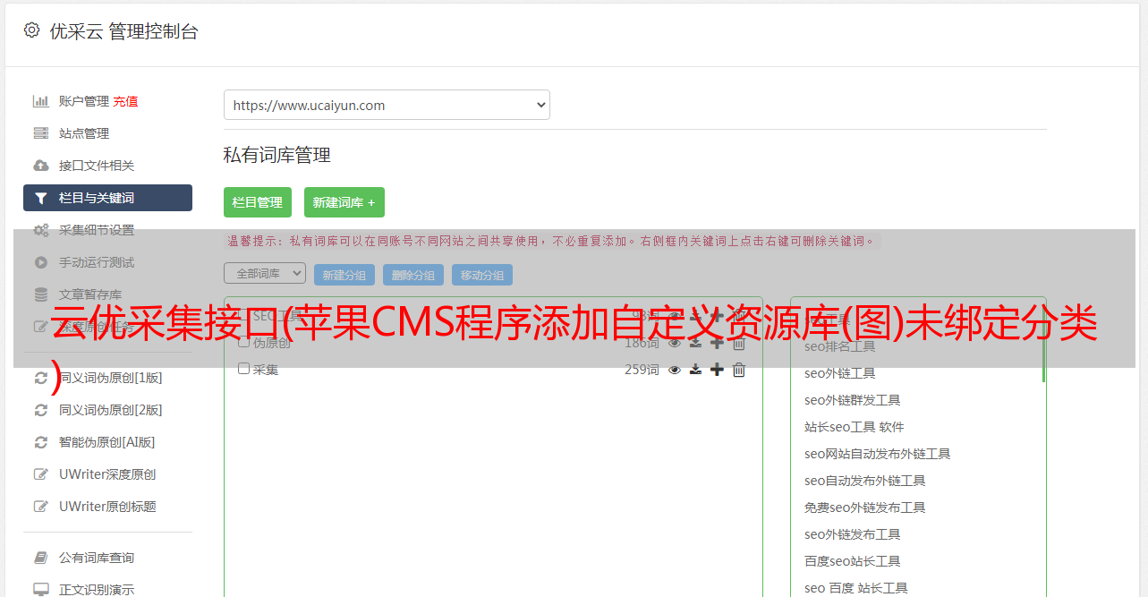 云优采集接口(苹果CMS程序添加自定义资源库(图)未绑定分类 )