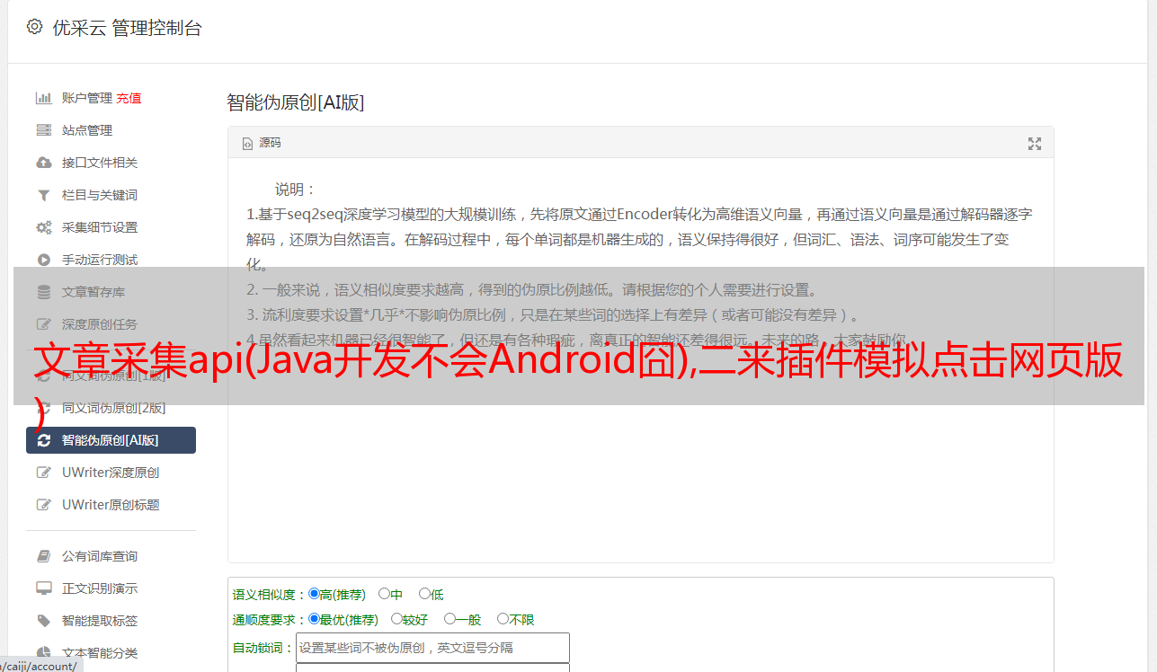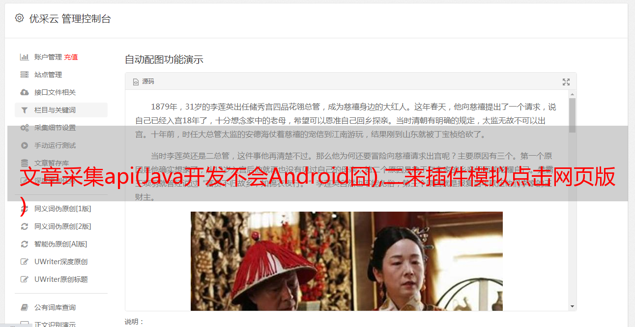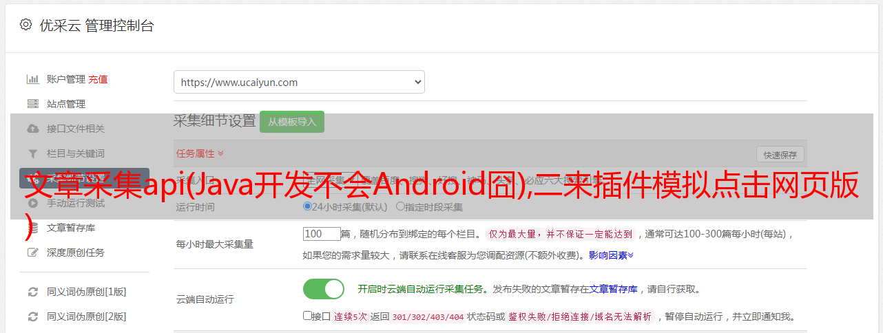 文章采集api(Java开发不会Android囧),二来插件模拟点击网页版 )
