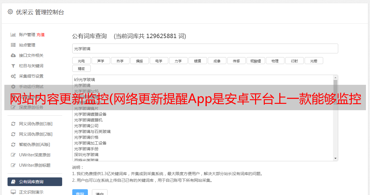 优采云 发布时间: 2021-08-28 04:09网站内容更新监控(网络更新提醒App是安卓平台上一款能够监控指定网页)