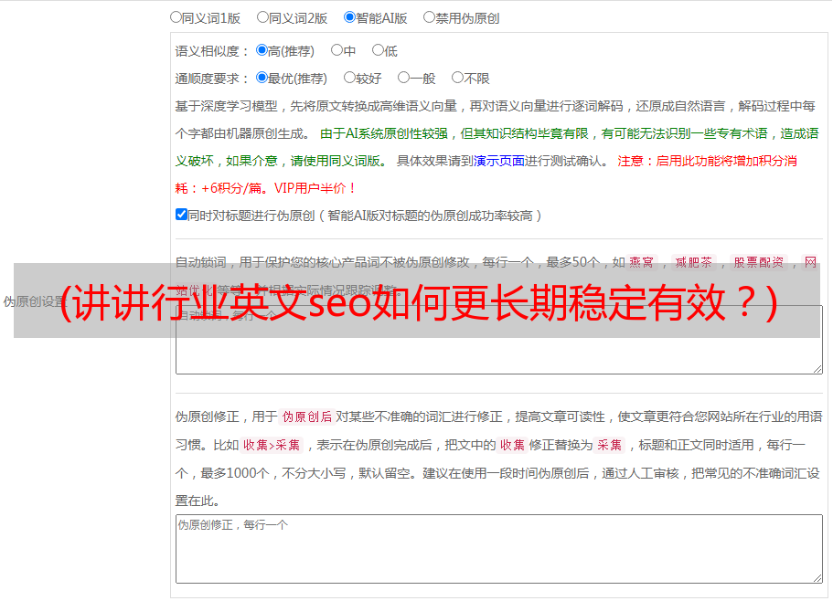 优采云 发布时间: 2021-08-28 10:15(讲讲行业英文seo如何更长期稳定有效?)