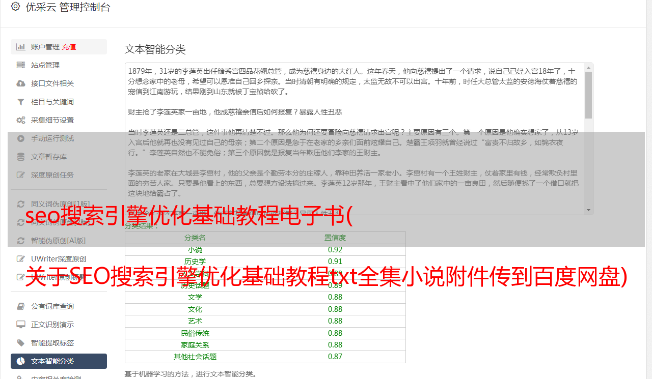 答:SEO搜索引擎优化基础教程txt全集小说附件已上传百度网盘,点击免费下载: