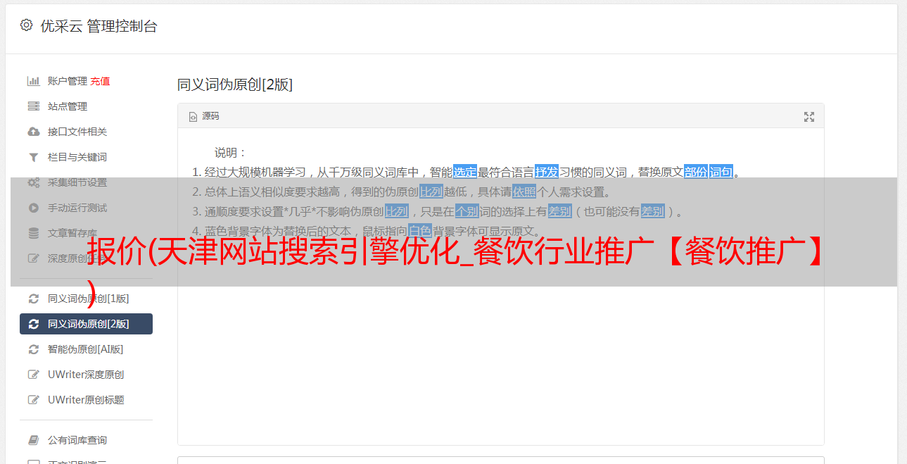 优采云 发布时间: 2021-08-28 15:16报价(天津网站搜索引擎优化_餐饮行业推广【餐饮推广】