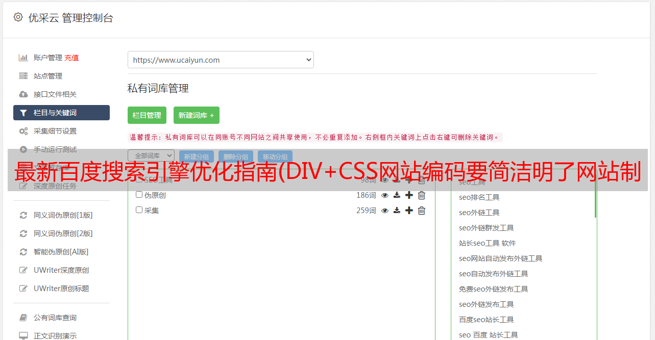 优采云 发布时间: 2021-08-28 19:07最新百度搜索引擎优化指南(DIV+CSS网站编码要简洁明了网站制作中要使用CSS技术设计)
