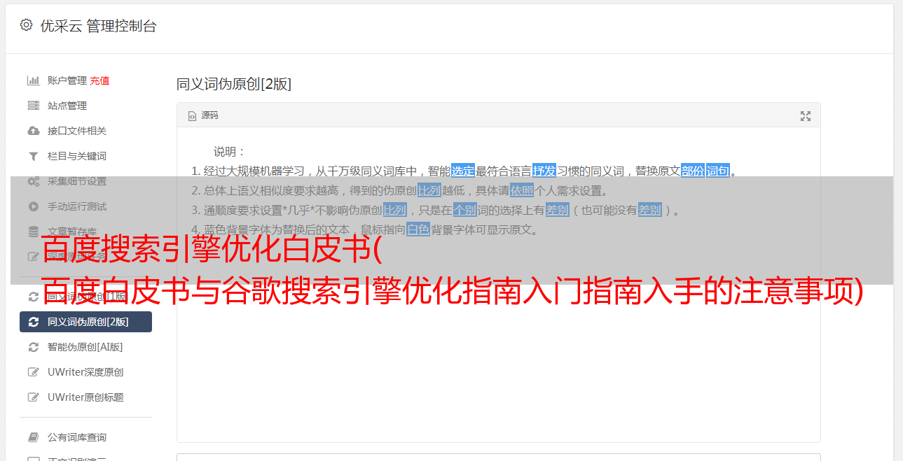 优采云 发布时间: 2021-08-28 22:14百度搜索引擎优化白皮书(