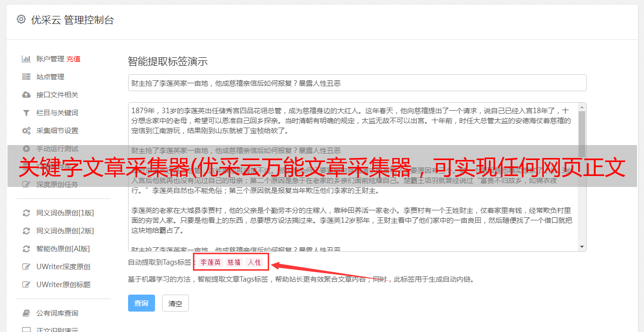 关键字文章采集器(优采云万能文章采集器,可实现任何网页正文自动提取)