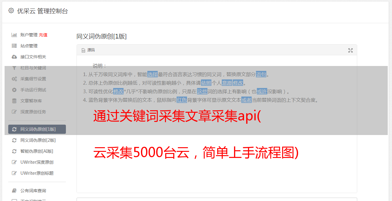 可以批量粘贴关键词搜索,选择采集content日期,可以查看标题和内容伪原创,识别是否文章原创,支持文章回回网站