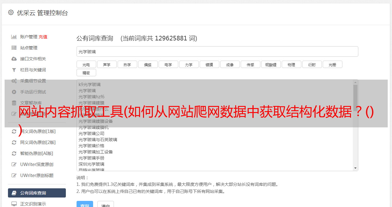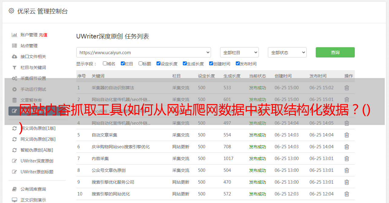 优采云 发布时间: 2021-08-29 00:01网站内容抓取工具(如何从网站爬网数据中获取结构化数据?()