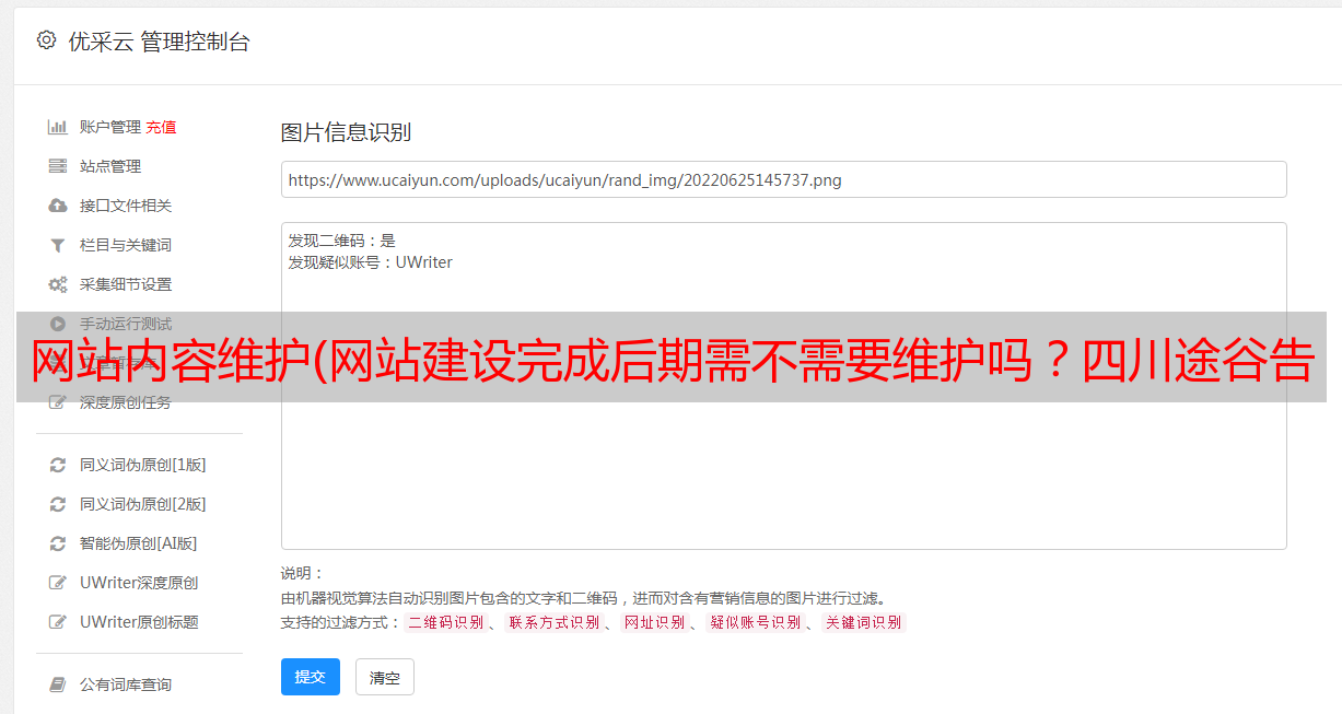 优采云 发布时间: 2021-08-29 01:17网站内容维护(网站建设完成后期需不需要维护吗?四川途谷告诉大家答案)