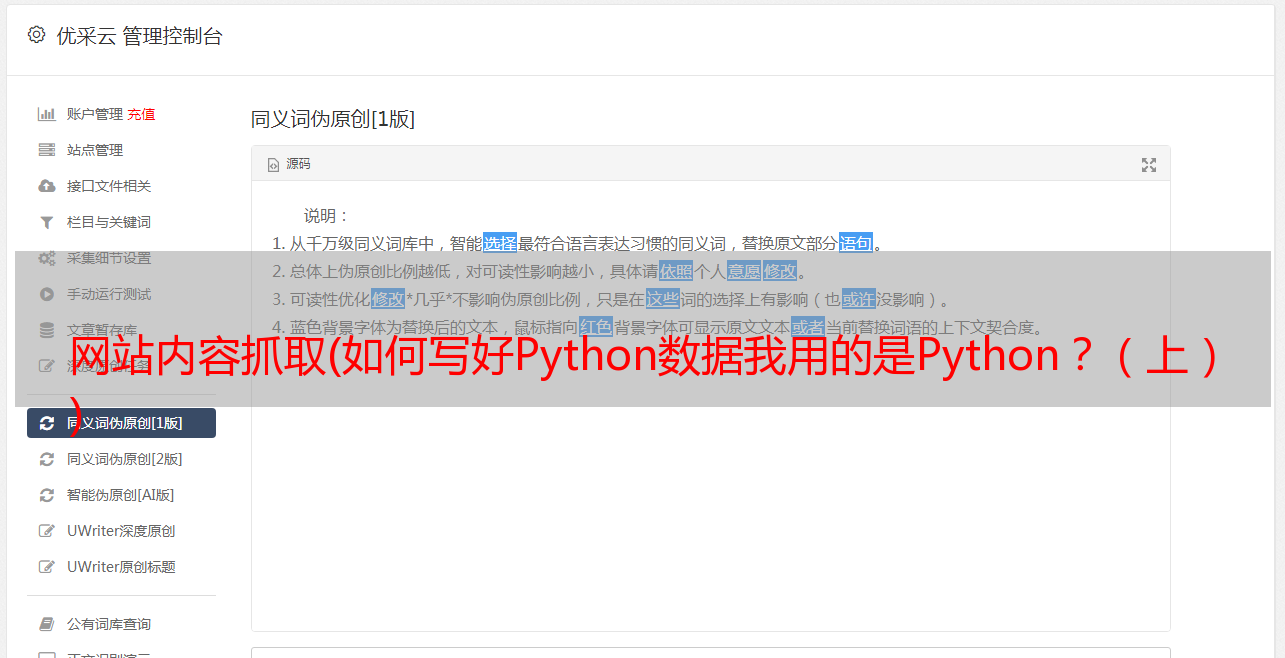 优采云 发布时间: 2021-08-29 06:04网站内容抓取(如何写好Python数据我用的是Python?(上)