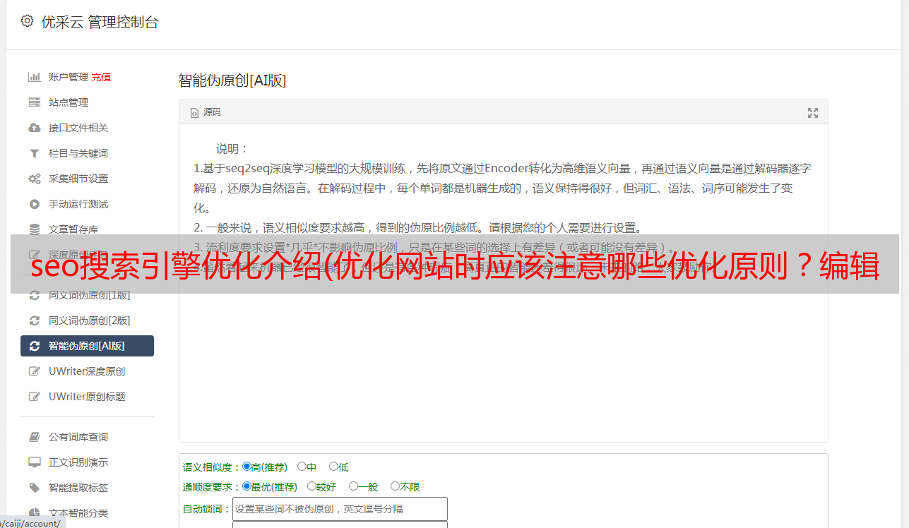 优采云 发布时间: 2021-08-29 14:00seo搜索引擎优化介绍(优化网站时应该注意哪些优化原则?编辑的简要介绍)