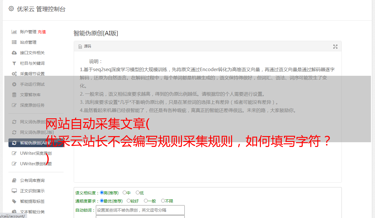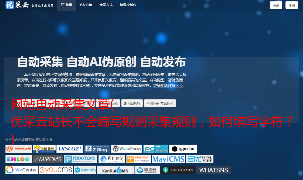 网站自动采集文章( 优采云站长不会编写规则采集规则,如何填写字符? )