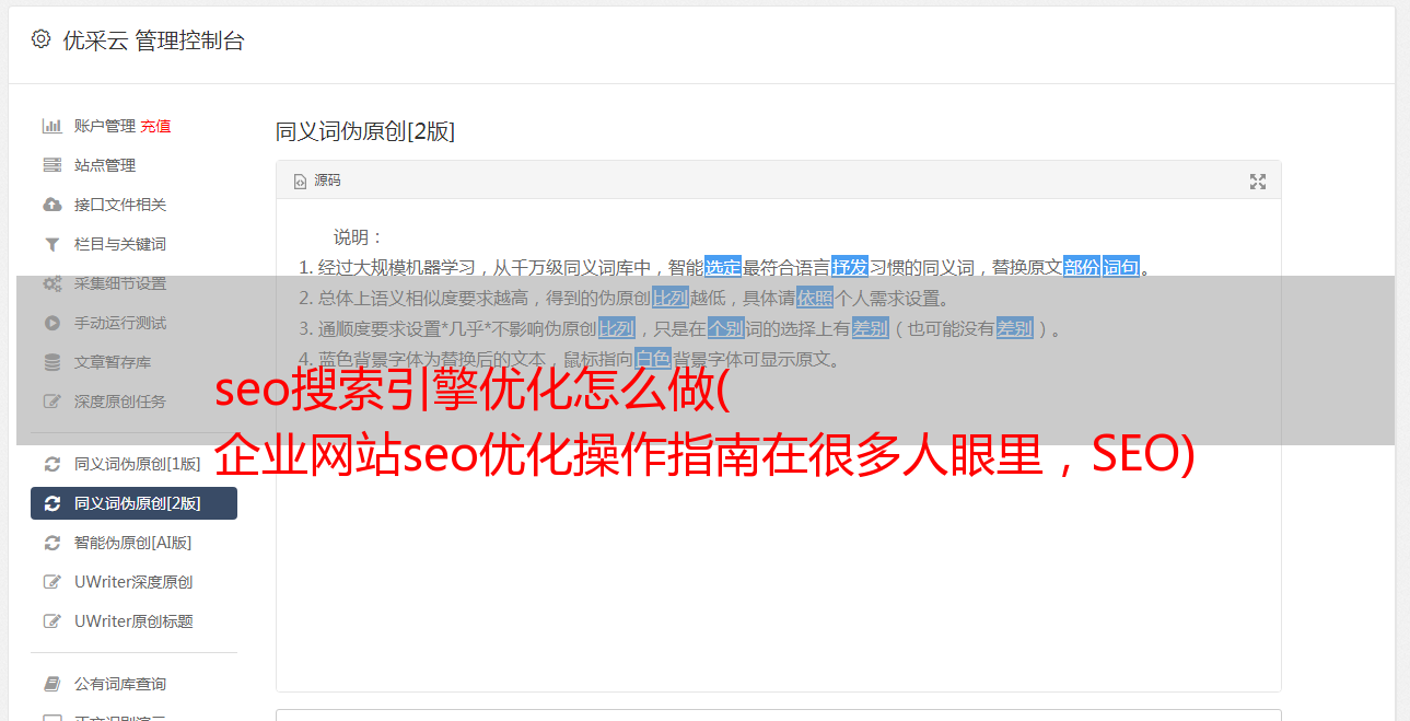 企业网站seo优化操作指南在很多人眼里,SEO)