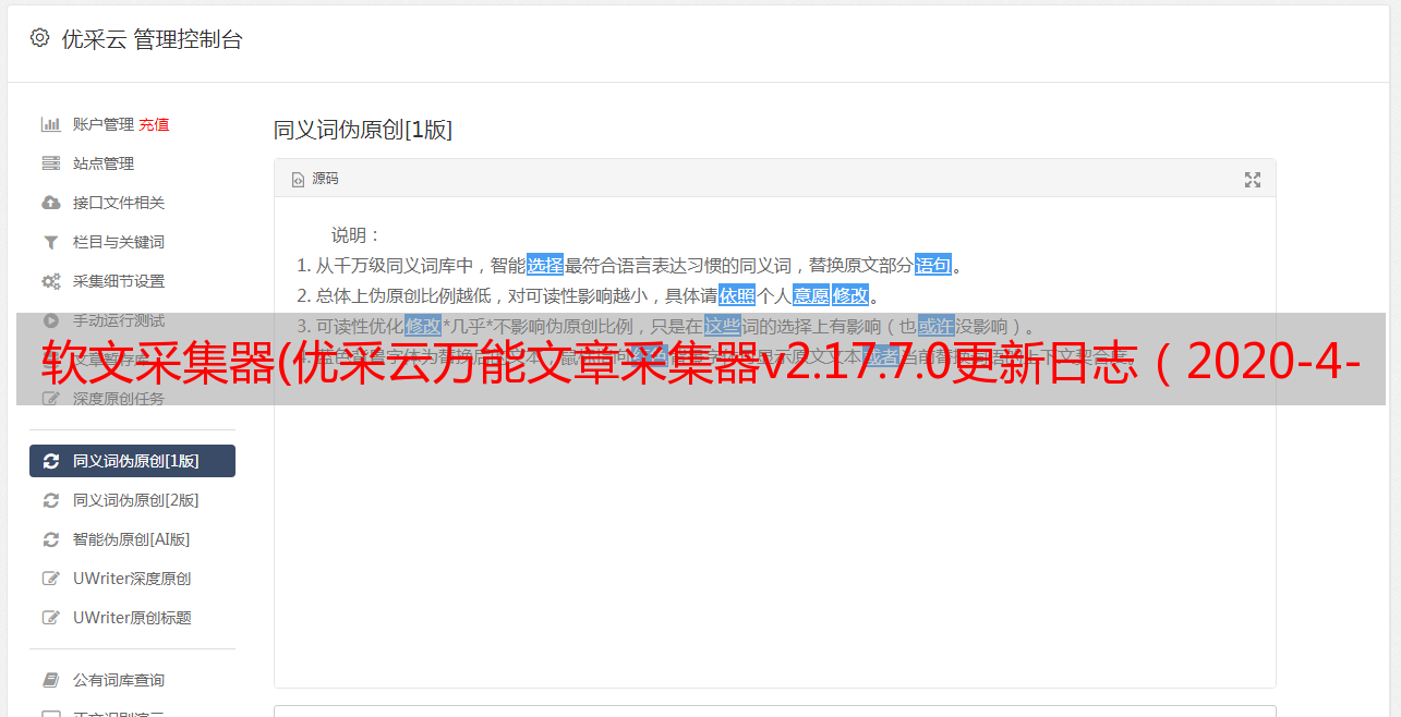 软文采集器(优采云万能文章采集器v2.17.7.0更新日志(2020-4-8))