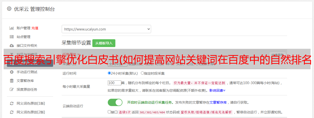 优采云 发布时间: 2021-08-29 19:02百度搜索引擎优化白皮书(如何提高网站关键词在百度中的自然排名呢?(图))