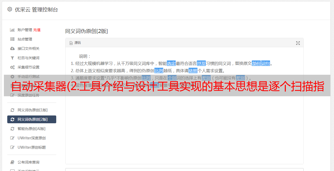 优采云 发布时间: 2021-08-30 01:06自动采集器(2.工具介绍与设计工具实现的基本思想是逐个扫描指定路径)