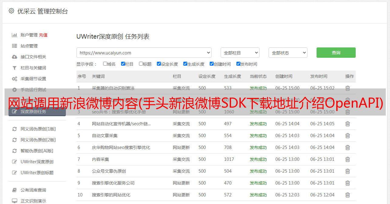 优采云 发布时间: 2021-08-30 03:02网站调用新浪微博内容(手头新浪微博SDK下载地址介绍OpenAPI)