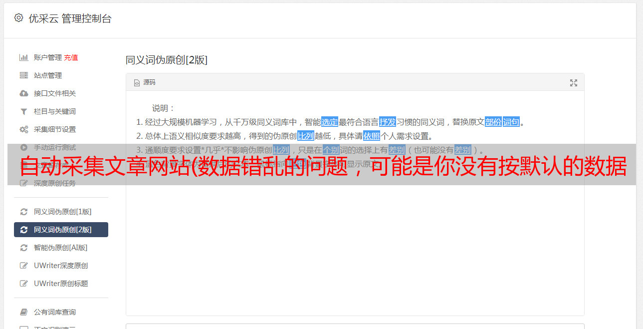 优采云 发布时间: 2021-08-30 03:07自动采集文章网站(数据错乱的问题,可能是你没有按默认的数据表)