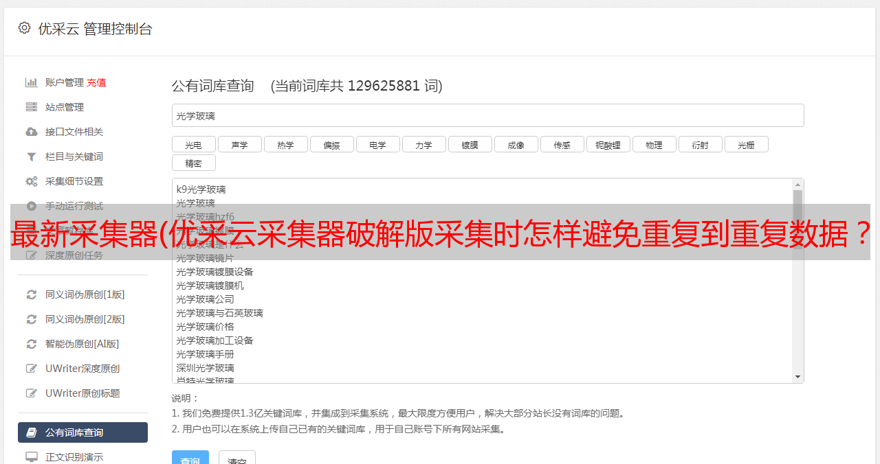 优采云采集器破解版是一个非常轻巧的采集器,它可以帮助用户找到他们想要的任何网页数据网站上采集,并且不需要用户有编程等。其他基础知识,所以即使是新手用户也可以轻松采集。
