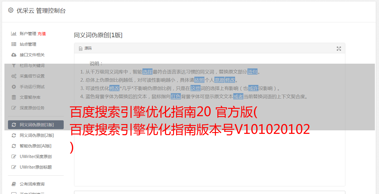 优采云 发布时间: 2021-08-30 08:04百度搜索引擎优化指南20 官方版(