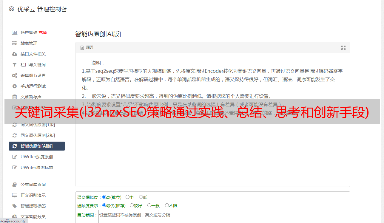 优采云 发布时间: 2021-08-30 13:16关键词采集(l32nzxSEO策略通过实践、总结、思考和创新手段)