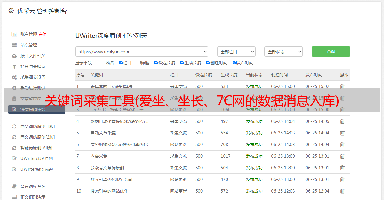关键词采集工具(爱坐、坐长、7C网的数据消息入库)