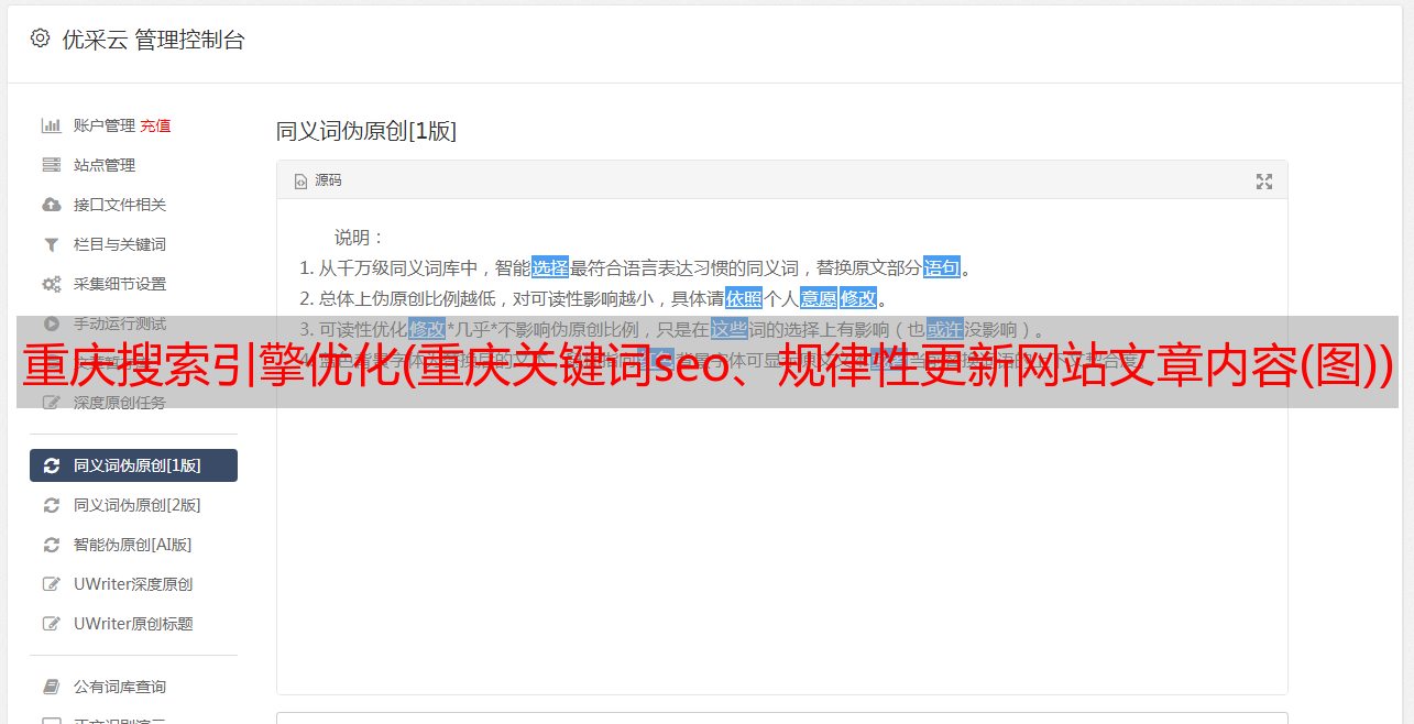 优采云 发布时间: 2021-08-30 16:02重庆搜索引擎优化(重庆关键词seo、规律性更新网站文章内容(图))