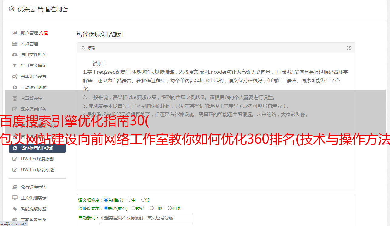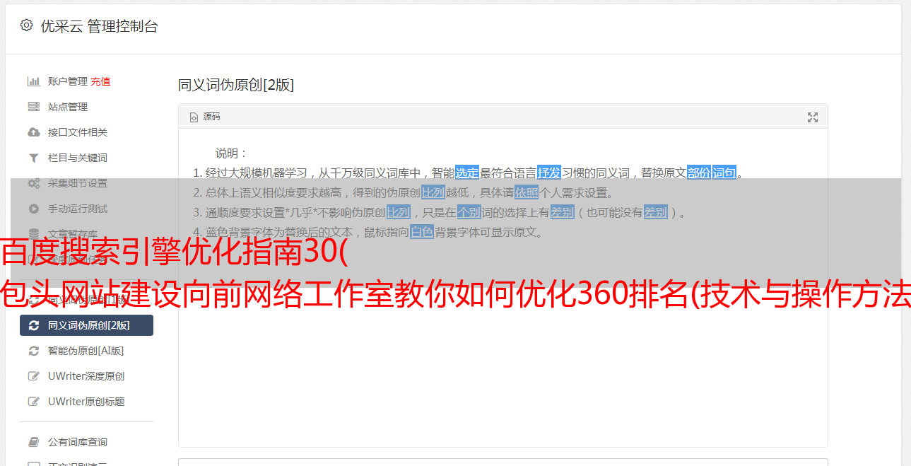 百度搜索引擎优化指南30( 包头网站建设向前网络工作室教你如何优化360排名(技术与操作方法) )