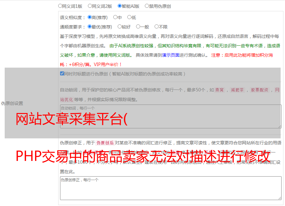 网站文章采集平台( PHP交易中的商品卖家无法对描述进行修改的修改)