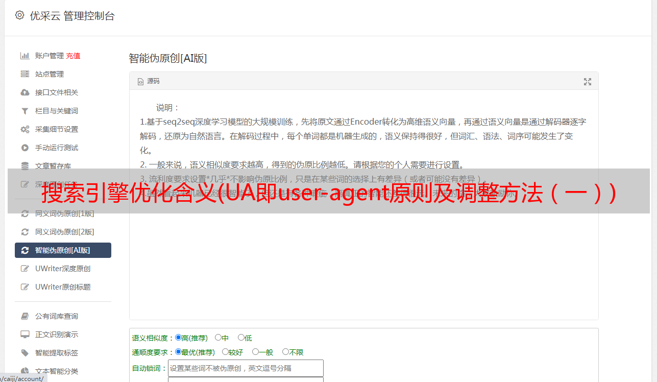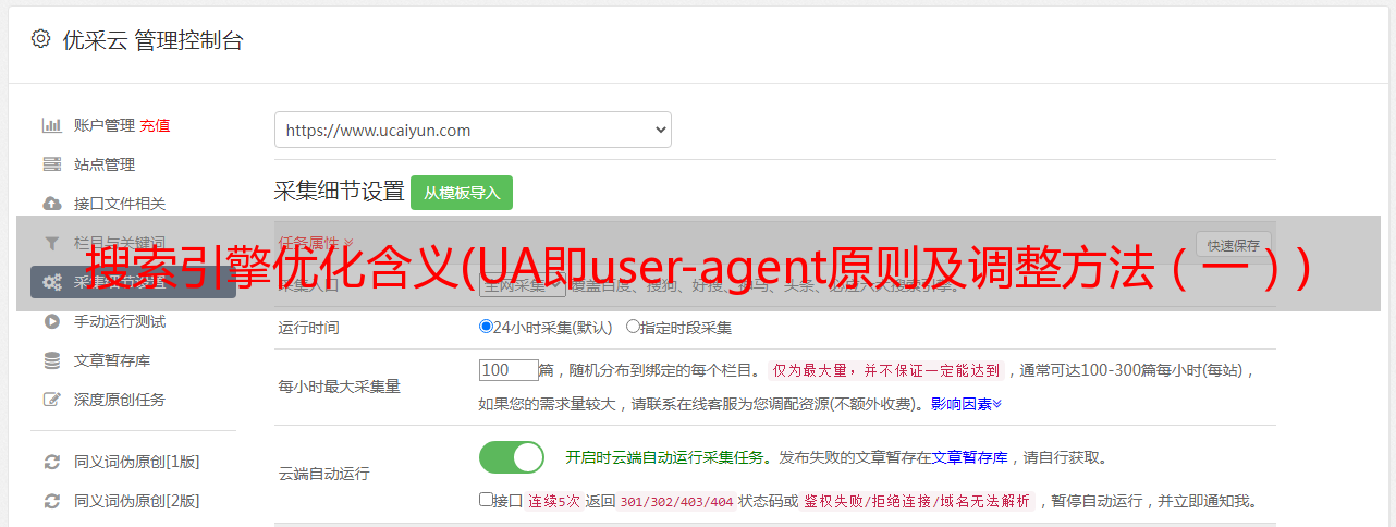 优采云 发布时间: 2021-08-31 02:01搜索引擎优化含义(UA即user-agent原则及调整方法(一))