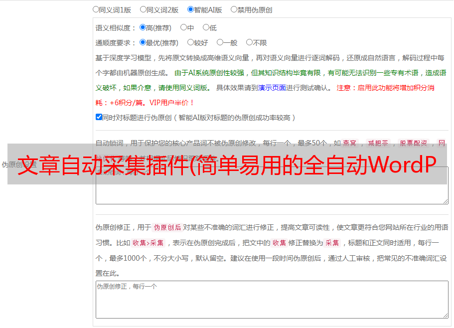 使用此功能前,需要在CT蜘蛛插件选项上设置伪原创功能设置。下图
