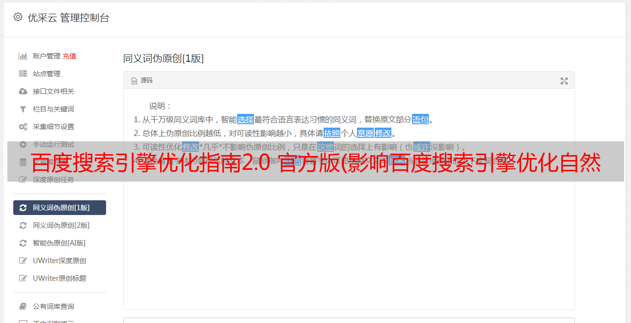 优采云 发布时间: 2021-08-31 13:04百度搜索引擎优化指南2.0 官方版(影响百度搜索引擎优化自然排名算法的因素有哪些因素?)