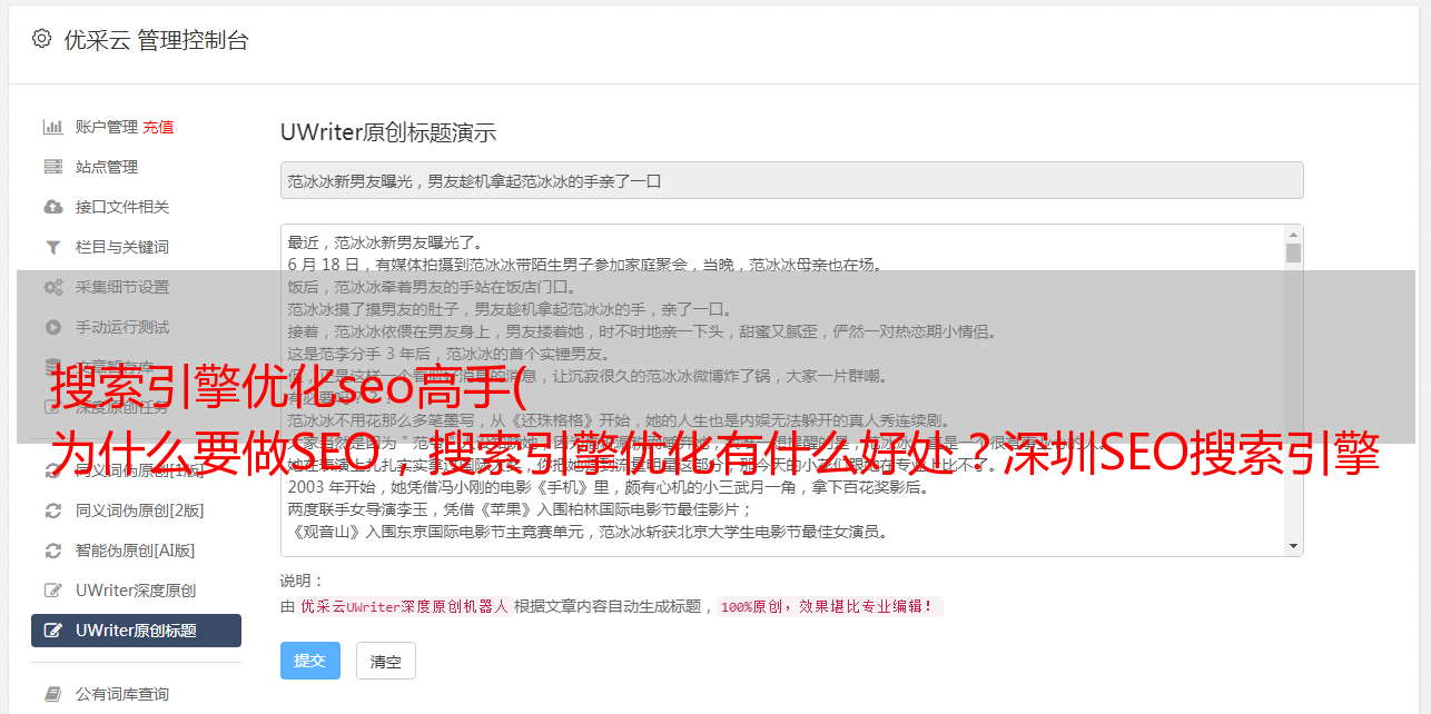 优采云 发布时间: 2021-08-31 14:09搜索引擎优化seo高手(