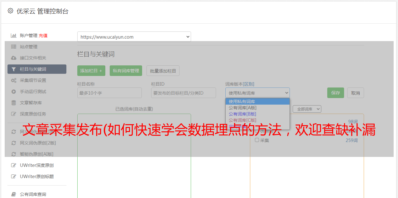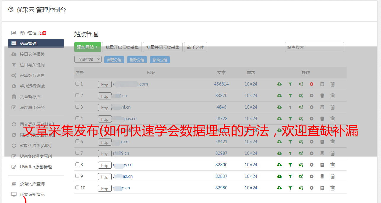 优采云 发布时间: 2021-08-31 14:14文章采集发布(如何快速学会数据埋点的方法,欢迎查缺补漏