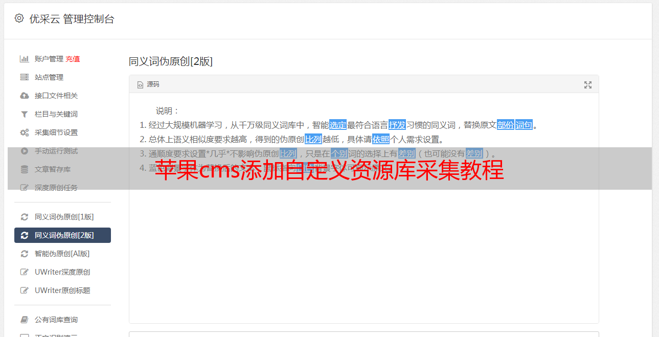 优采云 发布时间: 2020-08-17 00:43苹果cms添加自定义资源库采集教程
