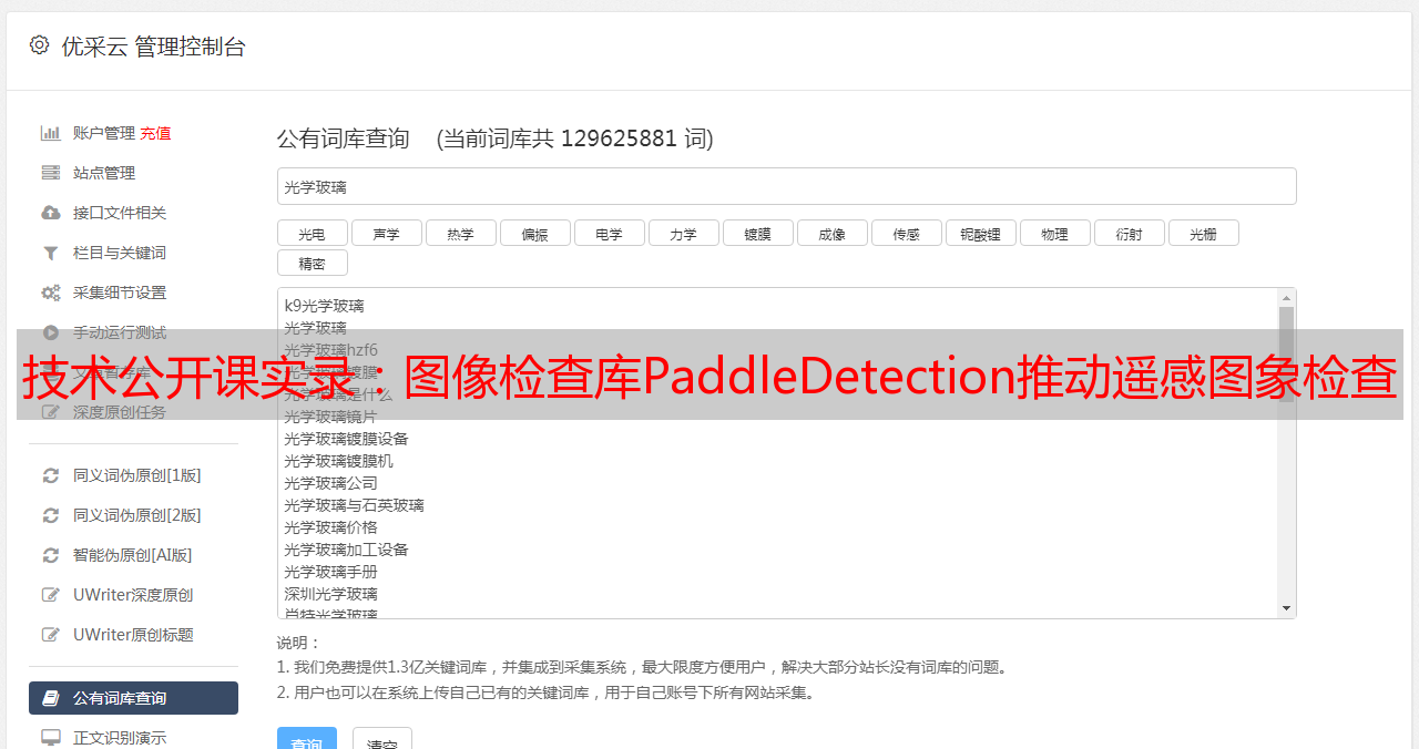 优采云 发布时间: 2020-08-17 00:56技术公开课实录:图像检查库PaddleDetection推动遥感图象检查