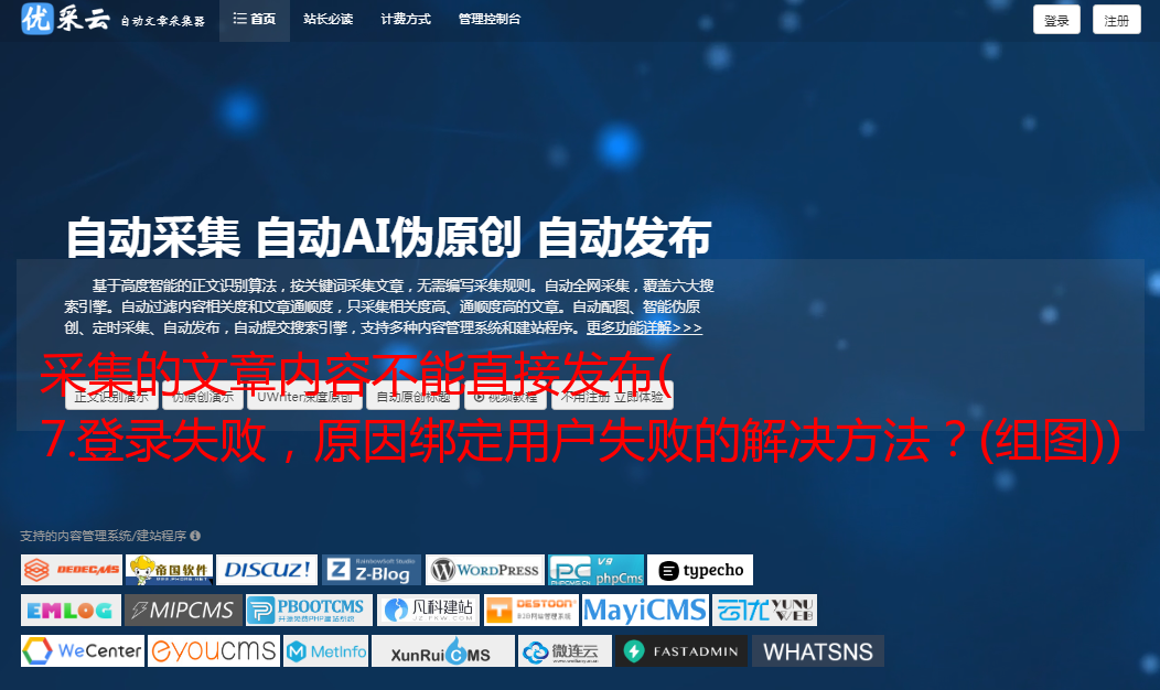 采集的文章内容不能直接发布( 7.登录失败,原因绑定用户失败的解决方法?(组图))