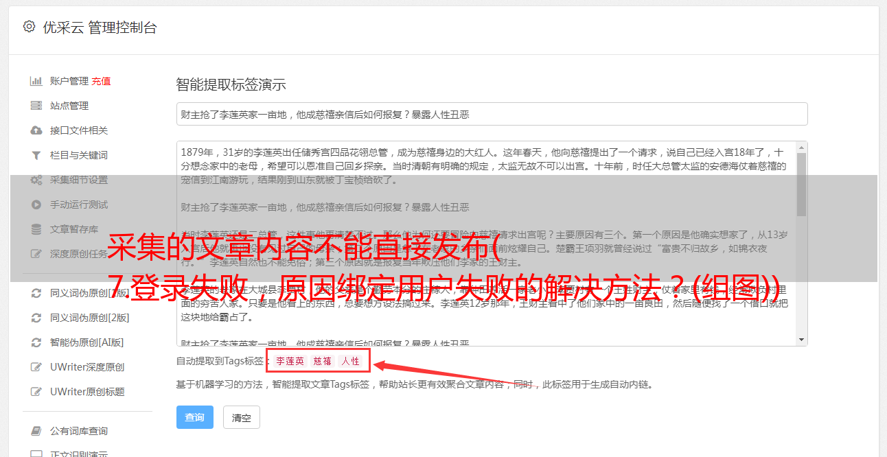 优采云 发布时间: 2021-08-31 18:00采集的文章内容不能直接发布(