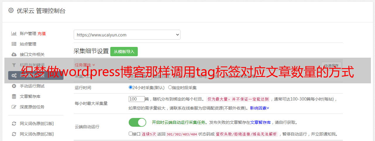 优采云 发布时间: 2020-08-17 10:50织梦做wordpress博客那样调用tag标签对应文章数量的方式