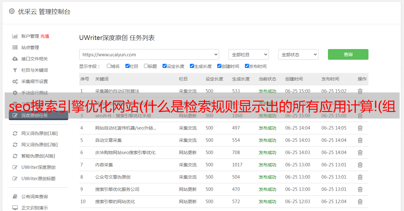 优采云 发布时间: 2021-09-01 13:02seo搜索引擎优化网站(什么是检索规则显示出的所有应用计算!(组图))