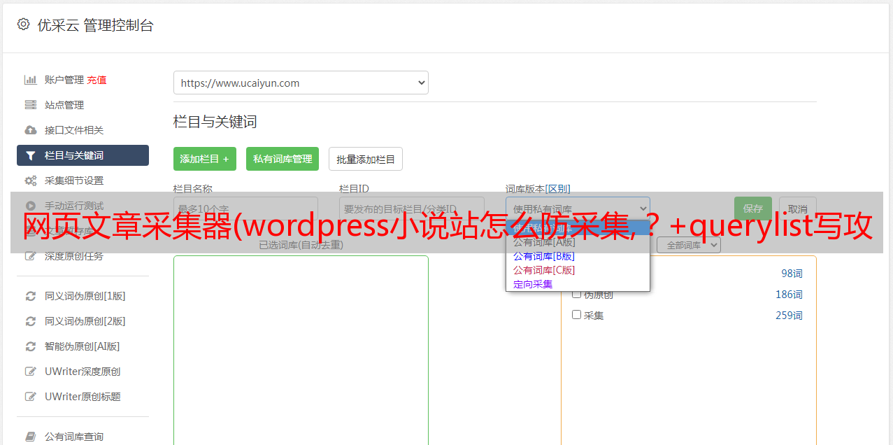优采云 发布时间: 2021-09-01 13:06网页文章采集器(wordpress小说站怎么防采集,?+querylist写攻略)