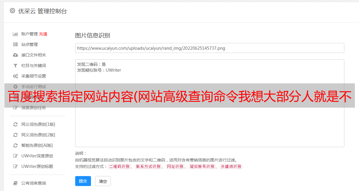 优采云 发布时间: 2021-09-01 13:09百度搜索指定网站内容(网站高级查询命令我想大部分人就是不知道)