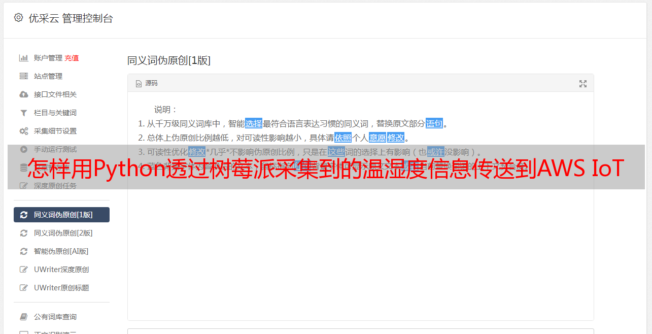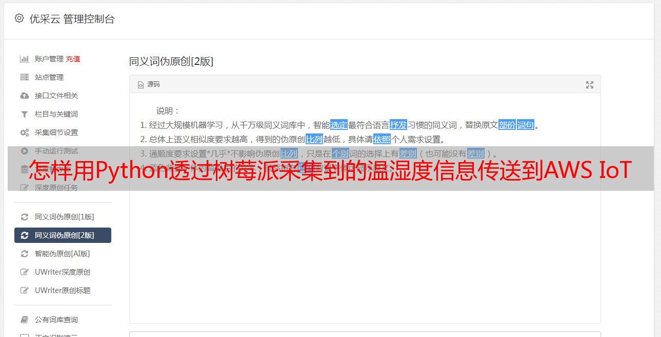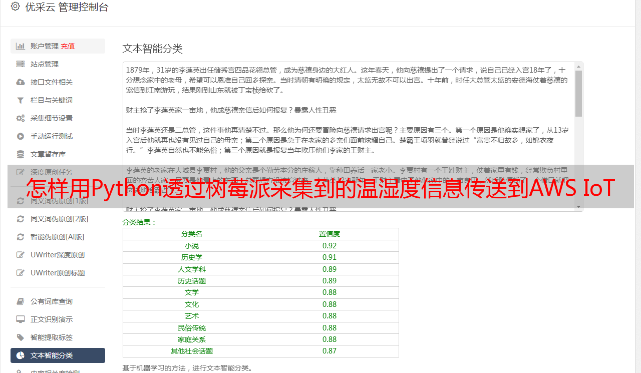 优采云 发布时间: 2020-08-17 14:41怎样用Python透过树莓派采集到的温湿度信息传送到AWS IoT