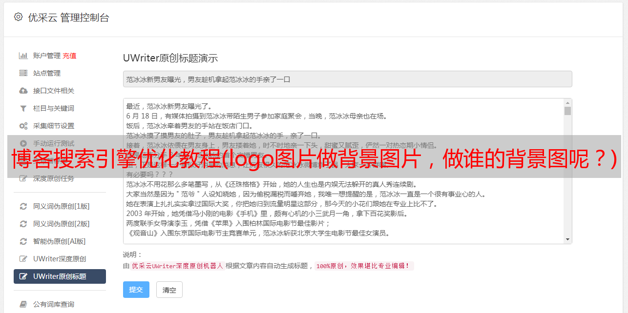 优采云 发布时间: 2021-09-01 21:05博客搜索引擎优化教程(logo图片做背景图片,做谁的背景图呢?)