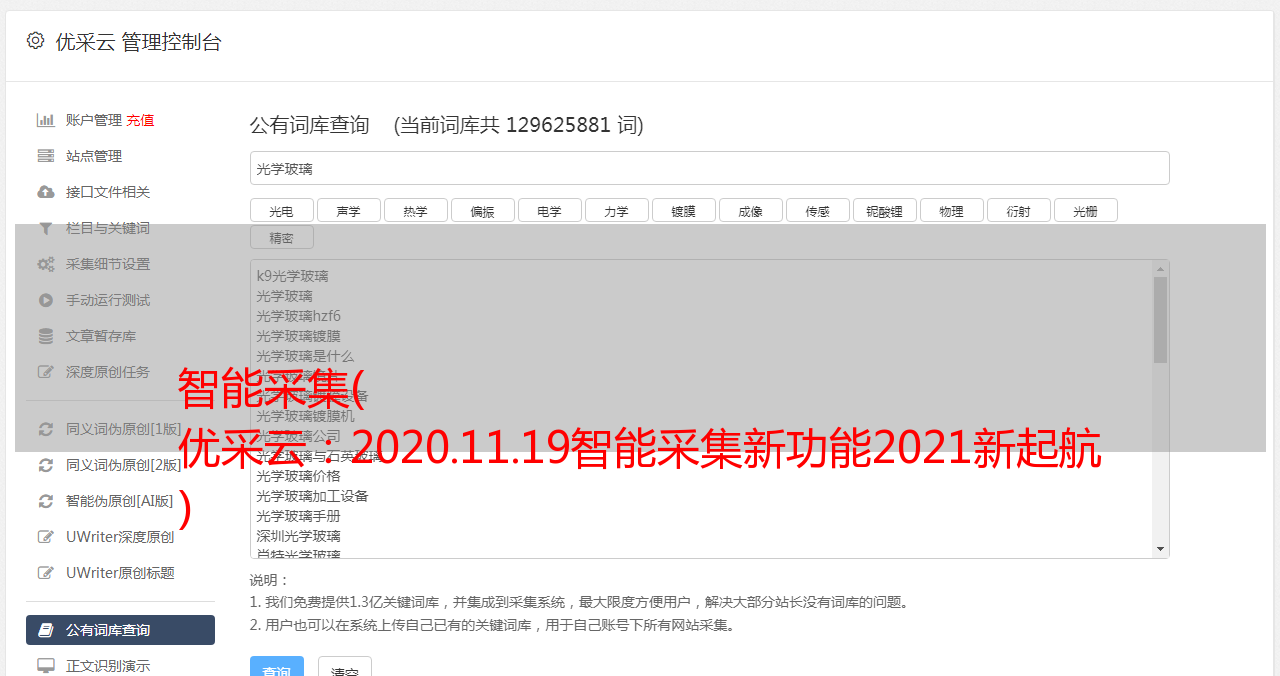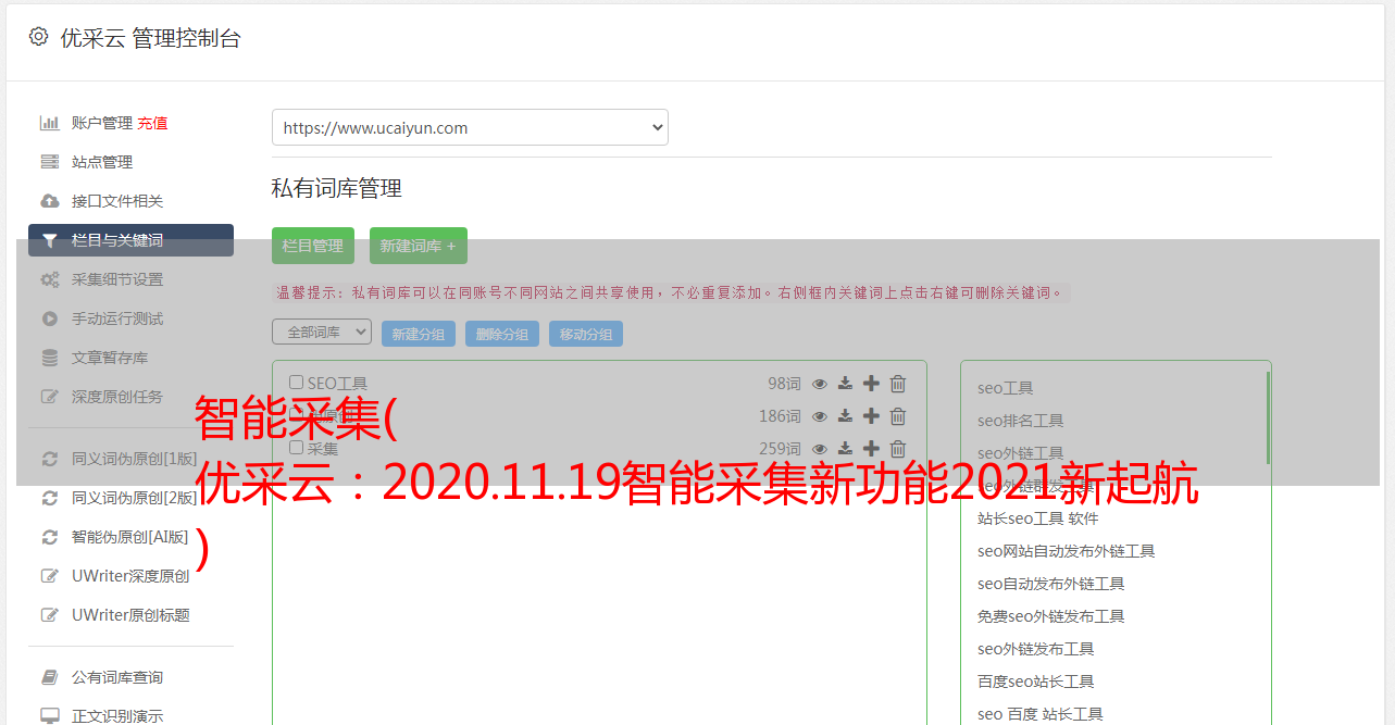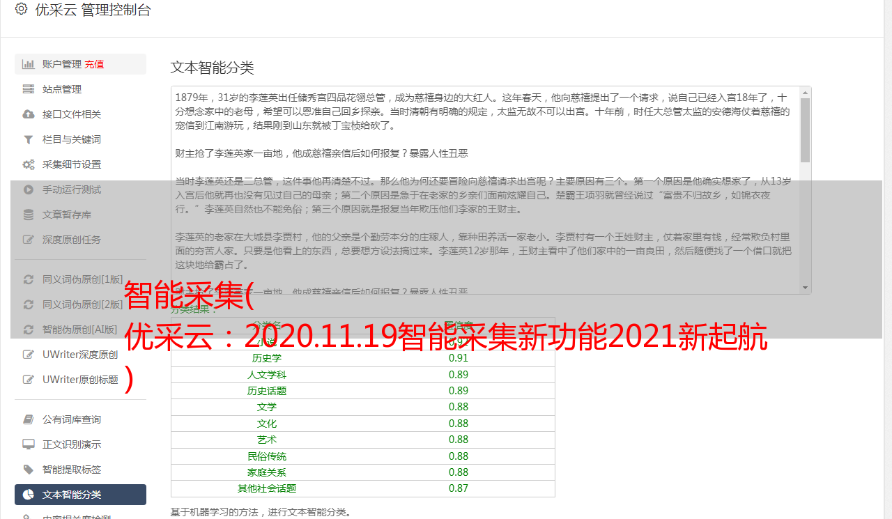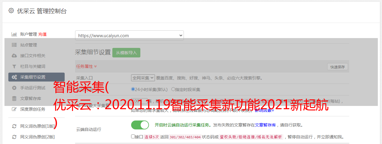 智能采集( 优采云:2020.11.19智能采集新功能2021新起航 )