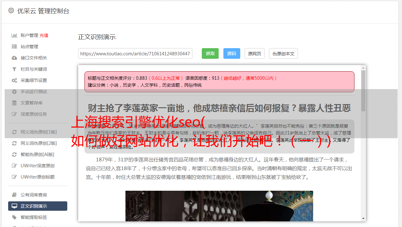 网站管理员应优化网站 上的文本和图像以及所有内容。创建了一个独特的原创 标题、描述元标记和 h1 标题。不要采集,最好不要发辱骂性的文章,必须是高质量的内容,也就是原创或伪原创。需要注意的是原创不等于高质量。我这里所说的高质量是指能够满足用户需求的内容。即使是聚合转发的内容,也是能够满足用户需求的优质内容。图片和文字