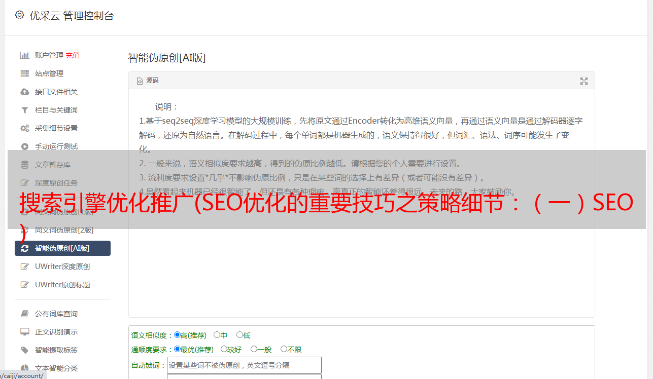 优采云 发布时间: 2021-09-02 03:01搜索引擎优化推广(SEO优化的重要技巧之策略细节:(一)SEO