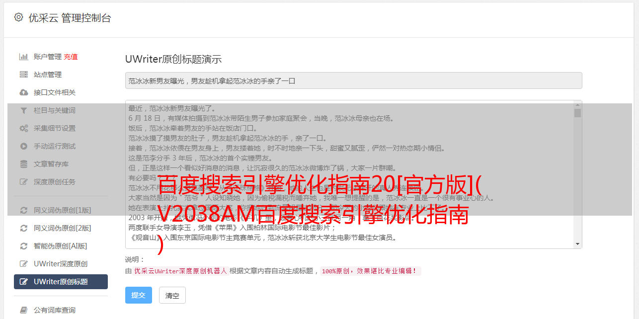 优采云 发布时间: 2021-09-02 14:07百度搜索引擎优化指南20[官方版](