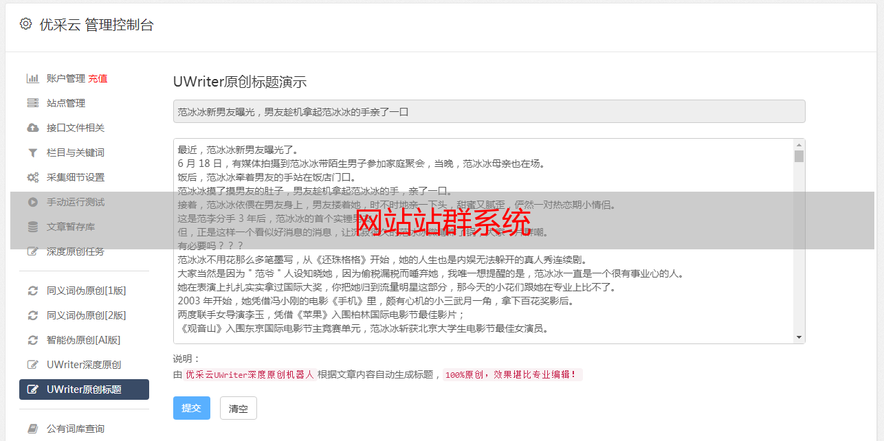 优采云 发布时间: 2020-08-17 22:07网站站群系统