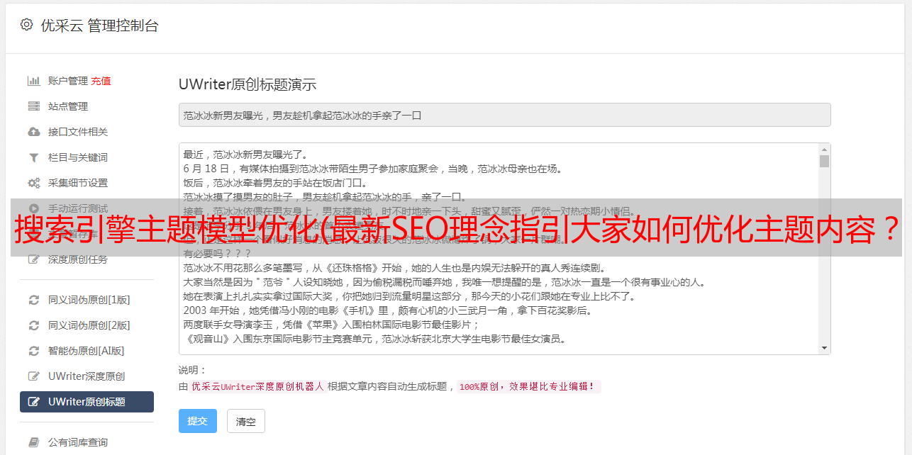 优采云 发布时间: 2021-09-02 15:01搜索引擎主题模型优化(最新SEO理念指引大家如何优化主题内容?(一))